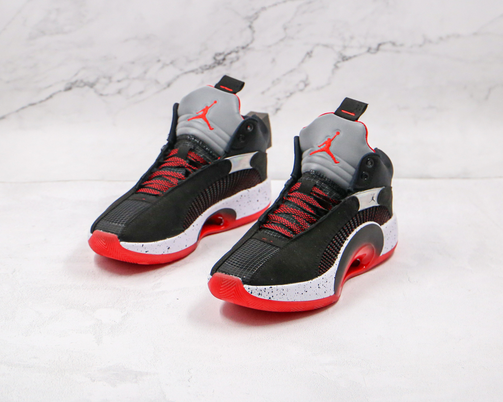 Como otras versiones anteriores, las Air Jordan XXXV siguen rompiendo todos los límites en unas zapatillas de baloncesto. Con un diseño inspirado en el modelo XXXIV, el debut de la combinación de colores de las XXXV rinde homenaje a las Air Jordan 5 originales en su 30 aniversario. Las AJXXXV "Bred" representan lo necesario para controlar el juego, te ayudan a equilibrar tu centro de gravedad sobre la cancha y desafiarlo cuando emprendes el vuelo.